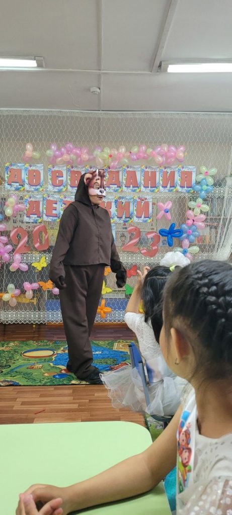 обстановке. Начался праздник с торжественного выхода выпускников. В гости к пришли Маша и Медведь, детям было очень интересно играть с ними. В течение всего утренника они спели много песен, рассказали стихи, порадовали танцами. От имени всех детей и родителей были сказаны слова благодарности воспитателям и всем работникам детского сада. Каждому выпускнику были вручены подарки и дипломы об окончании детского сада. Ярким и запоминающимся стал для детей выпускной в детском саду.