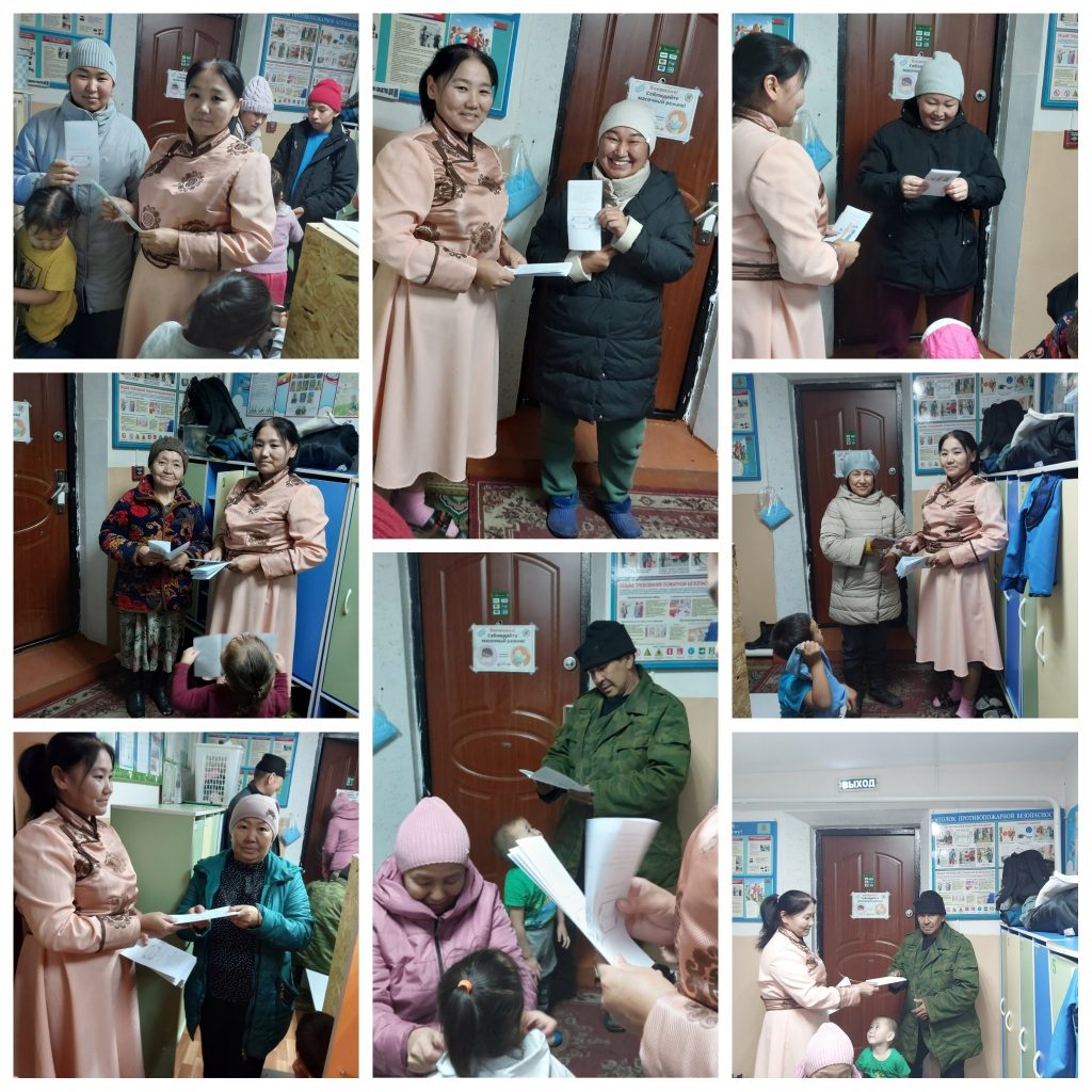 Памятка пациента о проведении вакцинации против COVID-19 вакциной "Гам-Ковид-Вак" «Торээн Тыва дылым» 01.11.2023 / Кижизидикчи башкы: Монгуш О.С. Ада-иелерге озуп орар салгалывыс «Торээн Тыва дылын» эки билир болуп артарынга арга сумелерни кадып. Буклеттерни сунган.