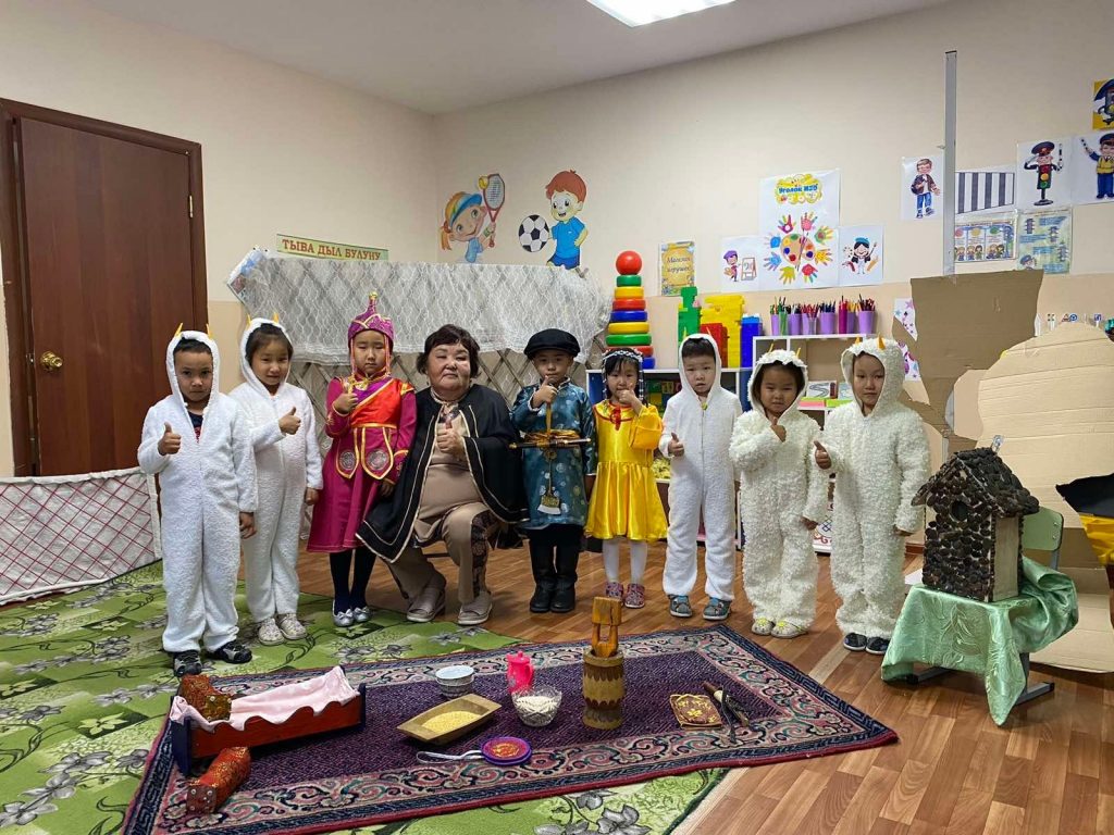 «Чинчи» уруглар садынын «Борбак далган» аттыг театр болгумунун уруглары . Удуртукчузу Аряна Байыр-ооловнанын удуртулгазы биле тыва улустун «Алдын -кушкаш «-деп тоолду ортумак болук уругларынга тыва -дыл хунун таварыштыр бараалгаткан .