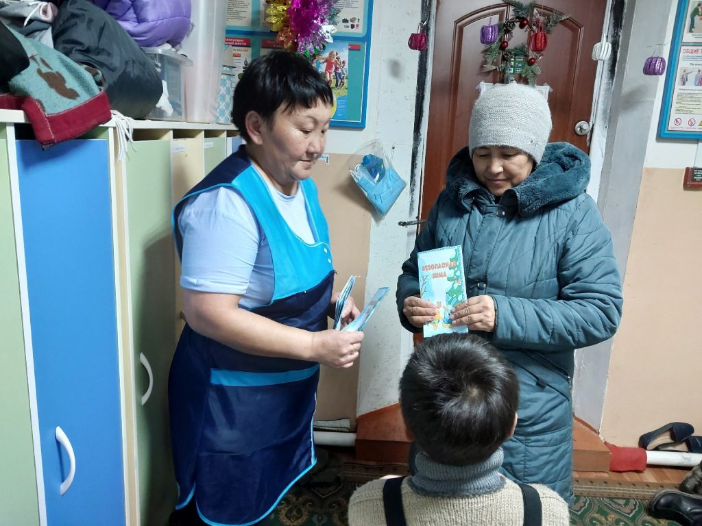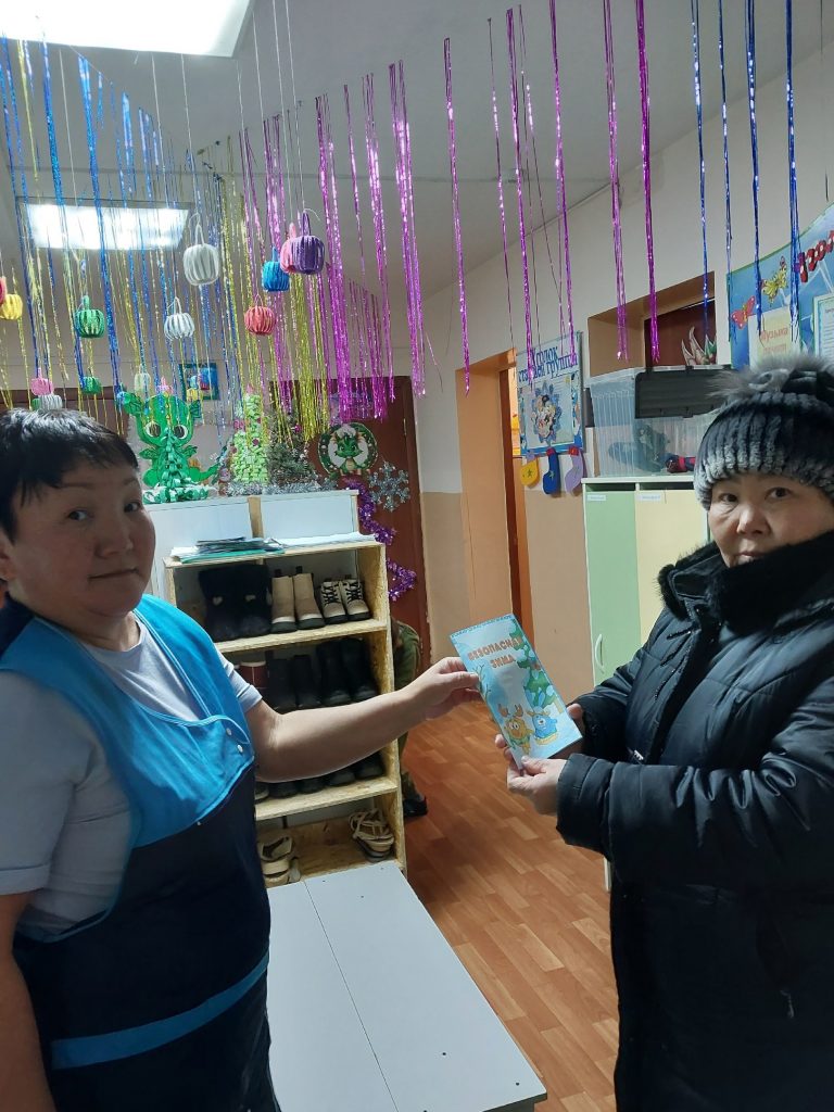 Наступает время зимних забав. Для ознакомления с правилами безопасности родителям вручили буклеты «Зимние забавы и правила безопасности»