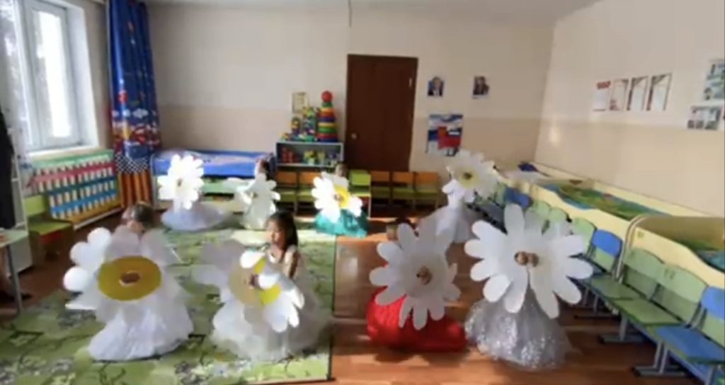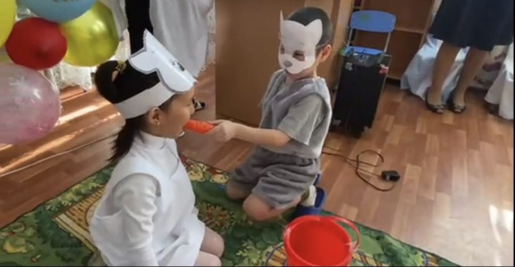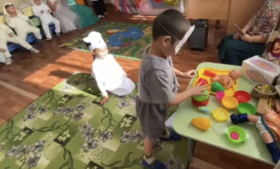 По сценарию танцевали танец «козочки и козлят», танец с цветами играли в игры «Веселая уборка», «Мама кашу нам сварила»
