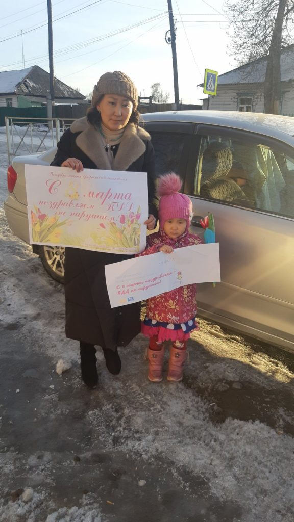 В честь праздника, Международного женского дня, педагоги и воспитанники МБДОУ «Чинчи» провели акцию «С 8 марта поздравляем — ПДД не нарушаем!». Основная цель – поздравить прекрасных женщин с праздником 8 марта, напомнить им о соблюдении правил дорожной безопасности.