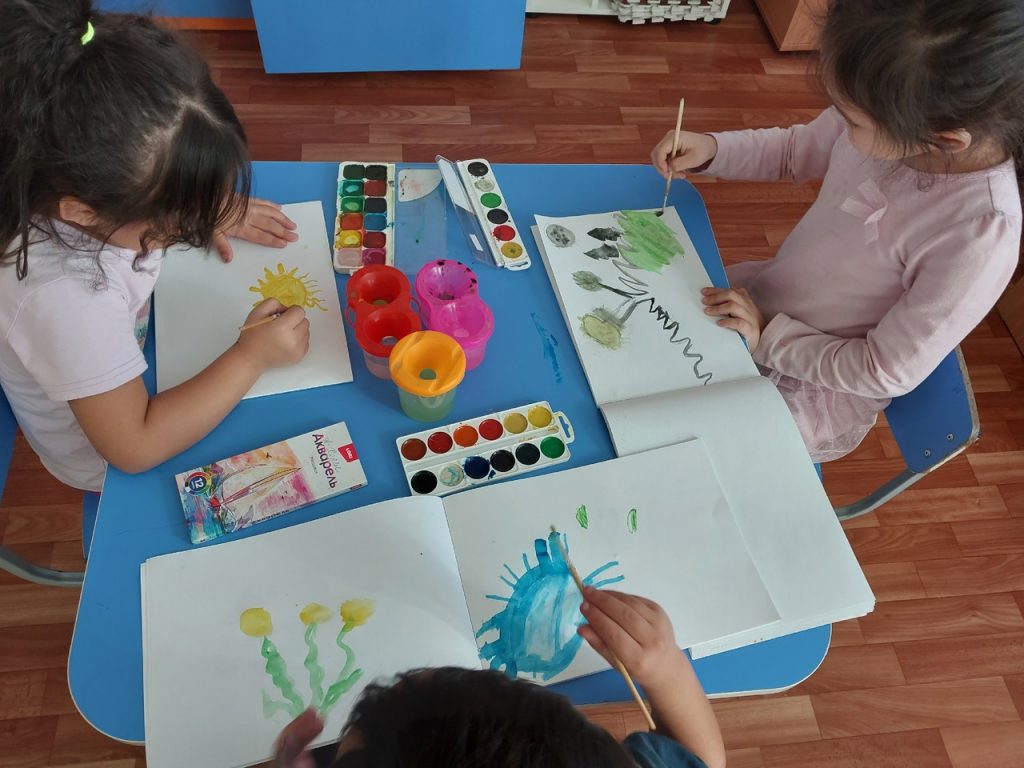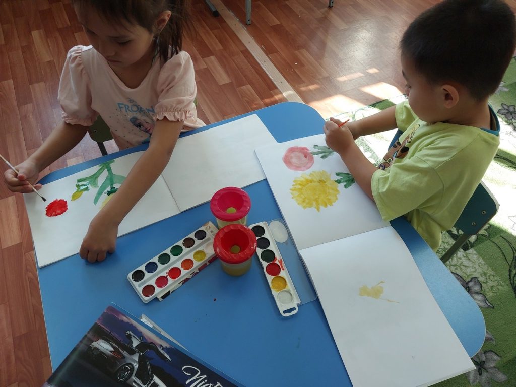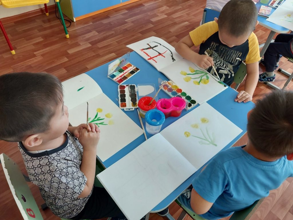 В средней группе воспитателем Монгуш О.С. проведено занятие по ХЭР/Рисование на тему: «Жёлтые одуванчики».
