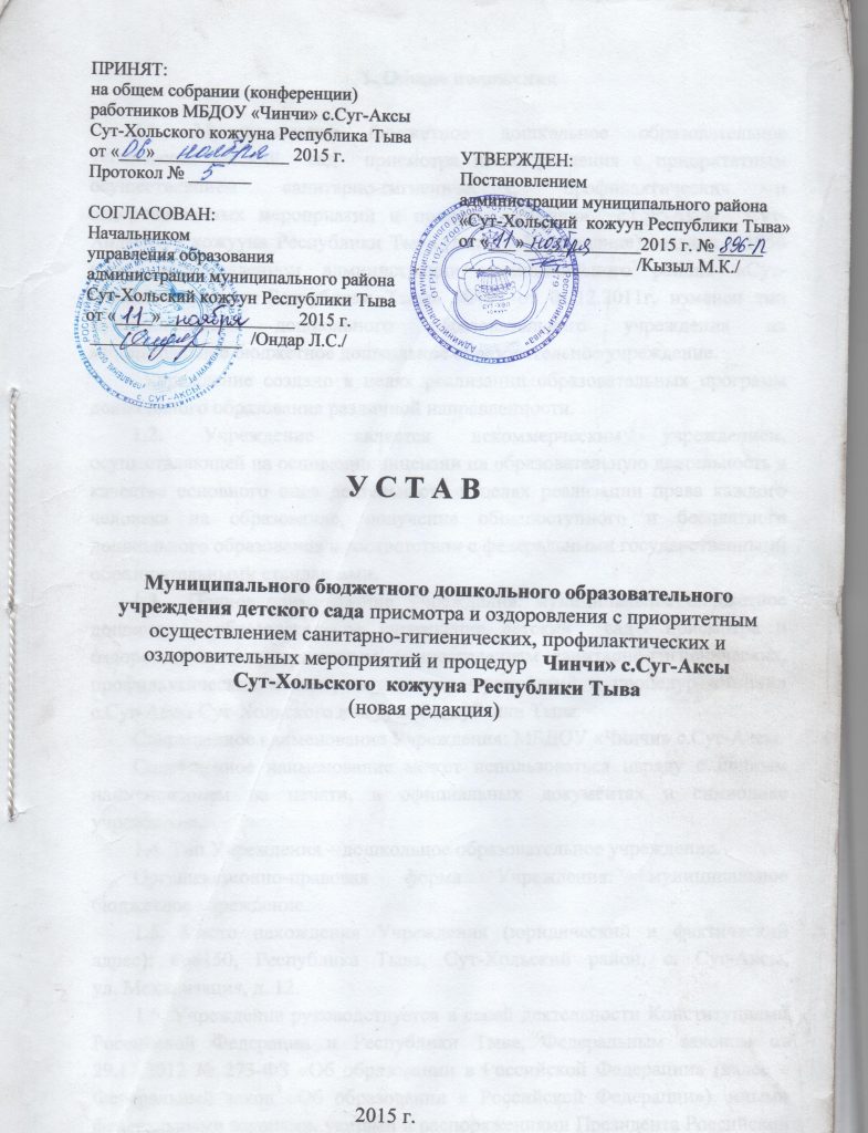Уставом муниципального дошкольного образовательного учреждения «Чинчи»